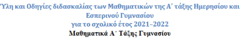 Ύλη και Οδηγίες διδασκαλίας των Μαθηματικών του Ημερησίου και Εσπερινού Γυμνασίου για το σχολικό έτος 2021–2022
